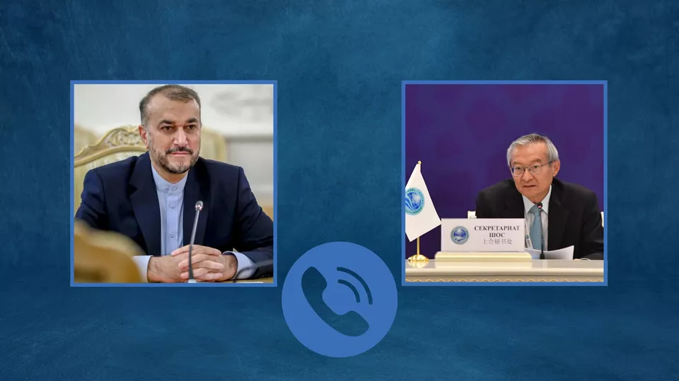 2024 年 4 月 17 日上海合作组织秘书长张明应约同伊朗外长通电话伊朗外长(左边) 上海合作组织秘书长 (右边)© Foto
